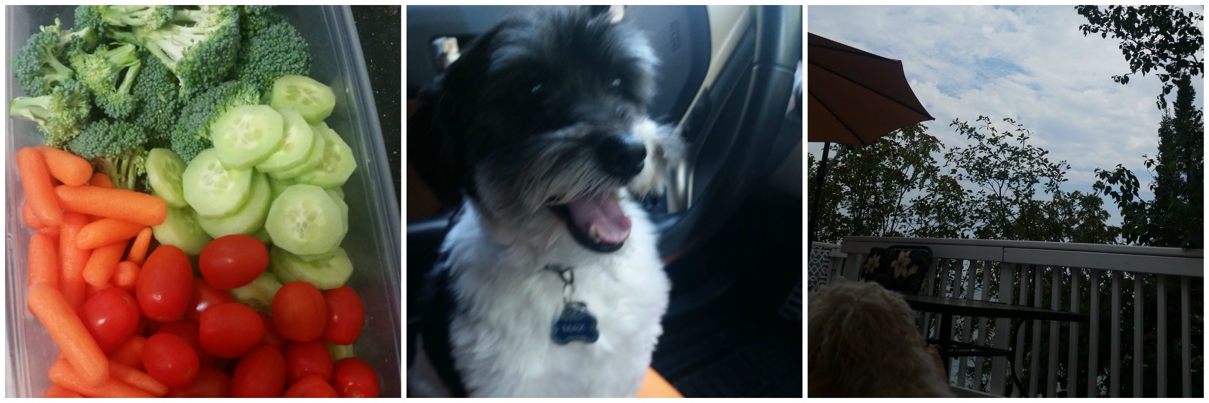 It’s all about camp…. 1. Prepping some colourful veggies for camp 2. Max “driving” my husband’s car 3. Beautiful afternoon view on the deck