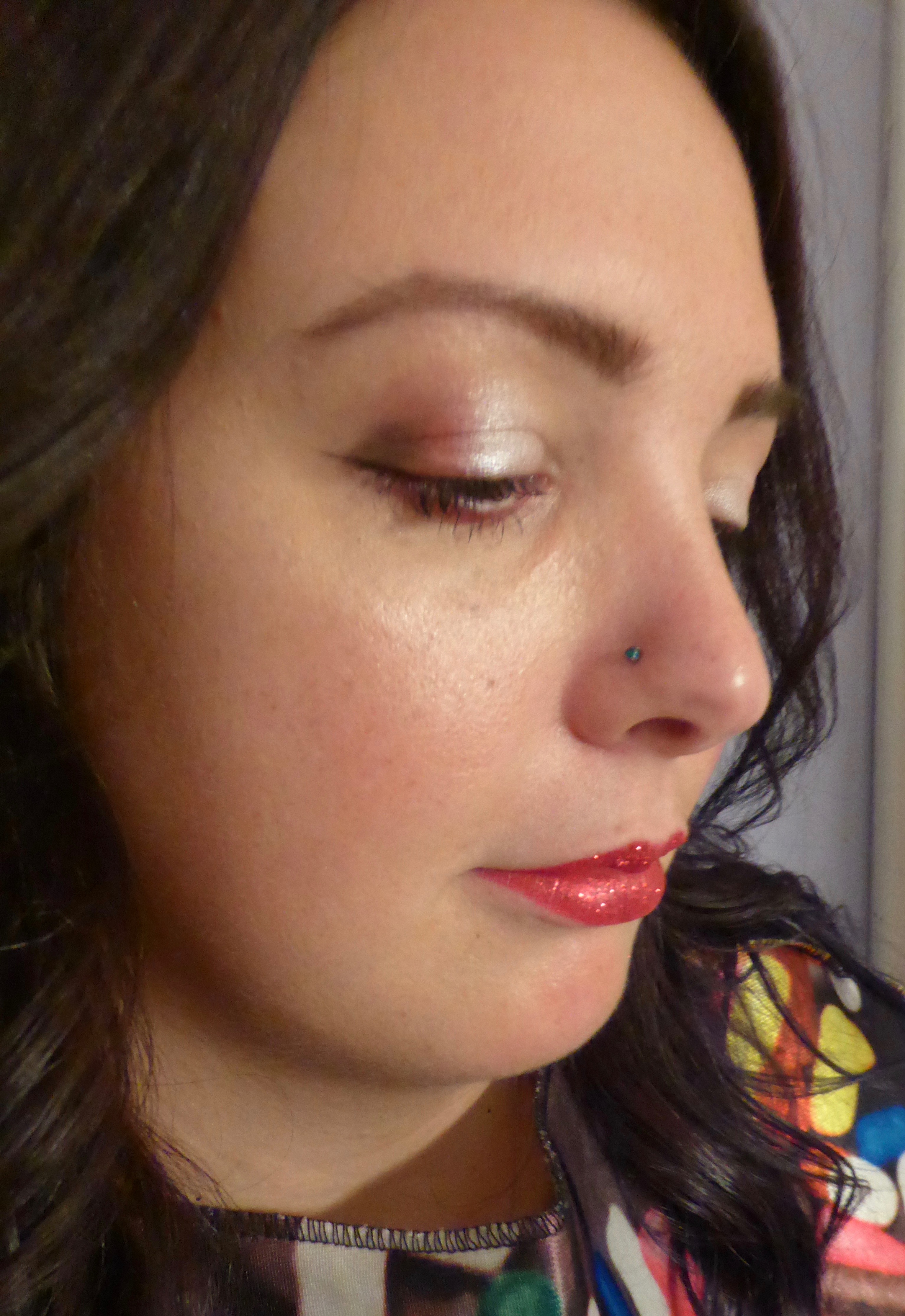 Eyes: Urban Decay Primer Potion (original). Makeup Geek Foiled Shadow – Whimsical (inner half of lid). Urban Decay Vice 3 Palette – Alchemy (outer half of lid and under eye), Bondage (in the outer corner of the lid), Alien (blended into crease), and Last Sin (brow bone). Benefit They’re Real Push Up Liner in Black (eyeliner on upper lid).