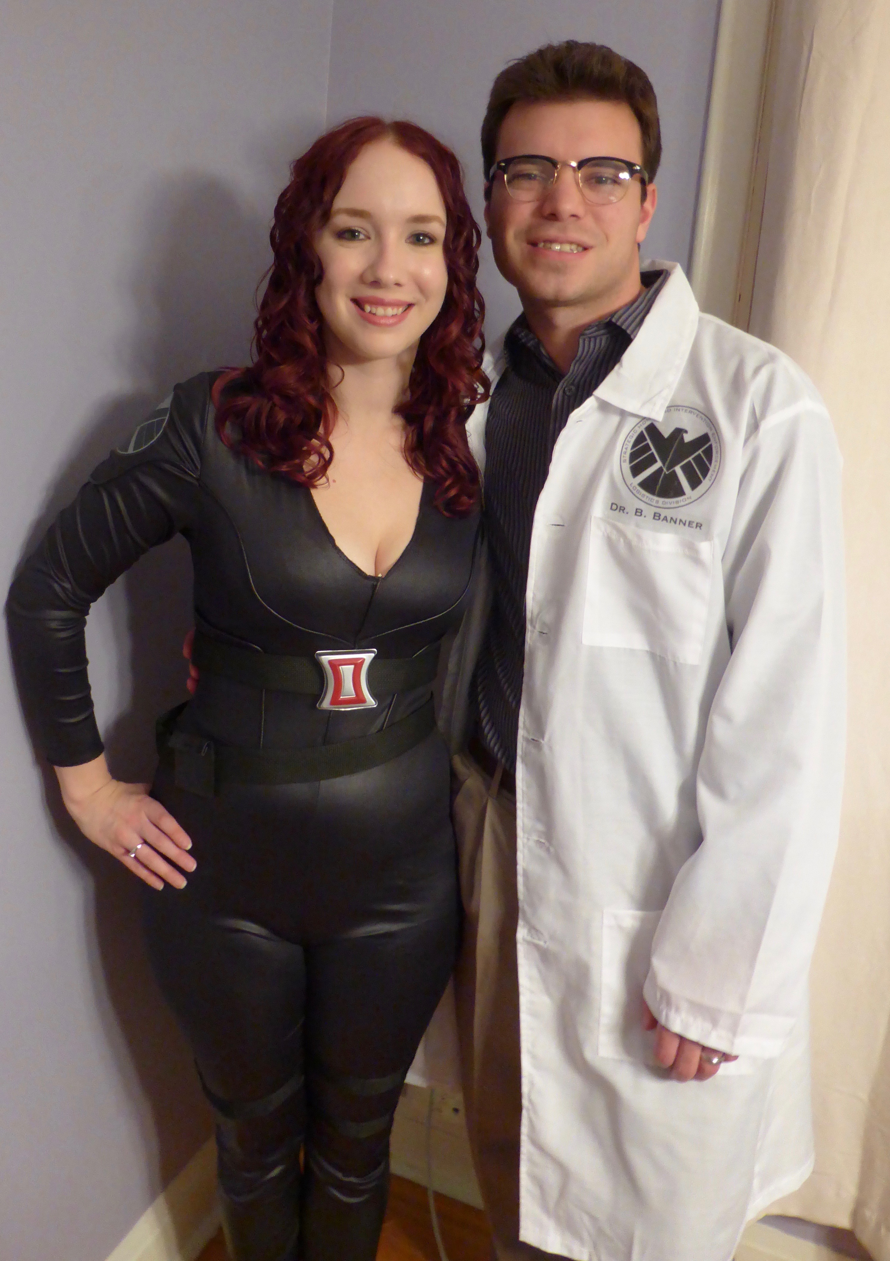 This was such a fun halloween! Black Widow is my favourite superhero ever (and I love my superheroes) so it was fun to get a chance to dress up as her! I went for a Black Widow in Iron Man 2 look since that is my favourite look that she has in the current Marvel movies. My husband dressed up as Bruce Banner, which if you have seen Avengers: Age of Ultron, you will understand why he chose that.